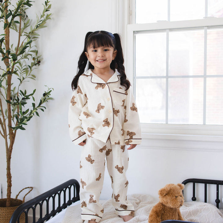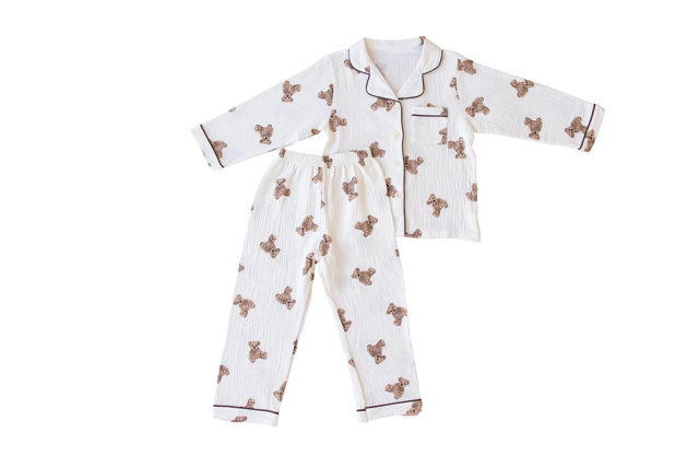 Snuggle up in KMC 2- Piece TEDDY BEAR COTTON PAJAMAS. Designed for toddlers these ultra-soft, breathable PJs are gentle on skin and perfect for cozy nights. Featuring an adorable teddy bear design, they will make bedtime extra special!